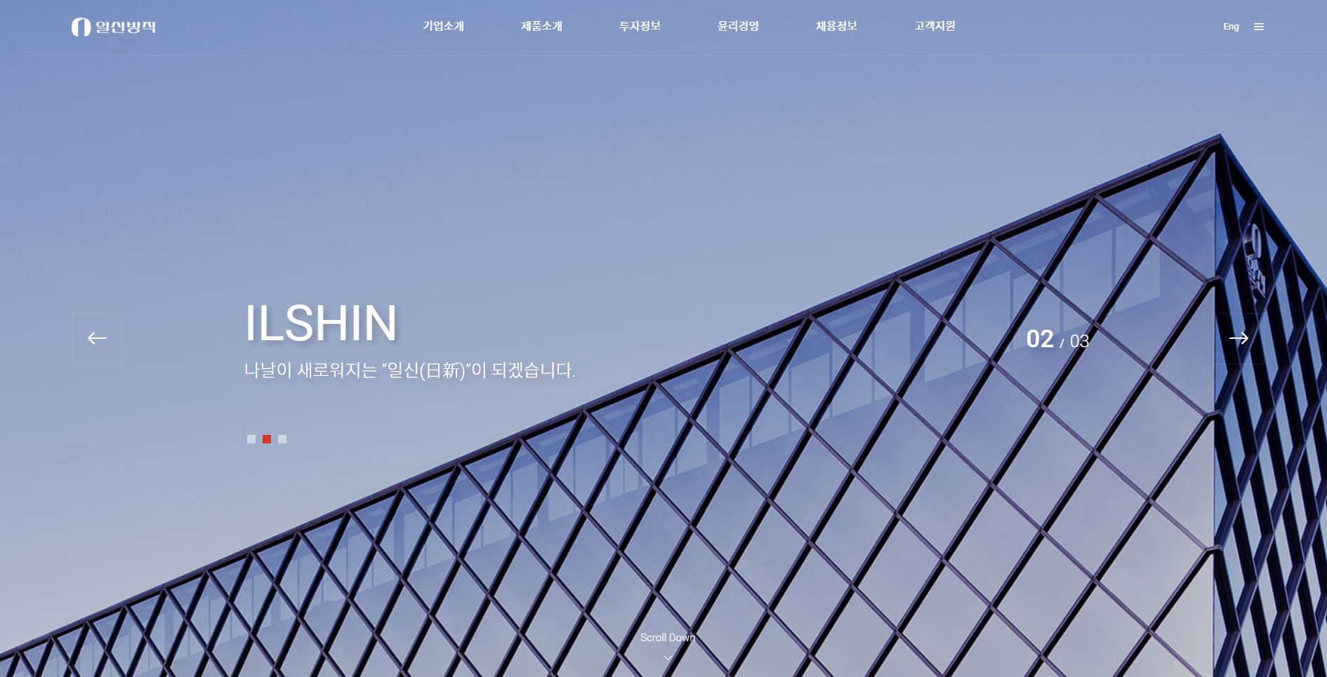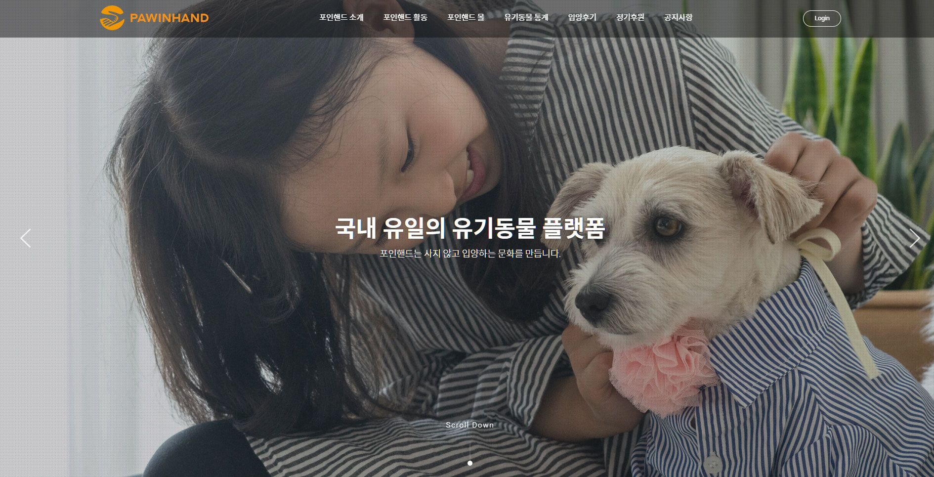 Slick Slide를 이용하여 슬라이드를 제작했습니다. Aos를 사용하여 마우스 스크롤 시