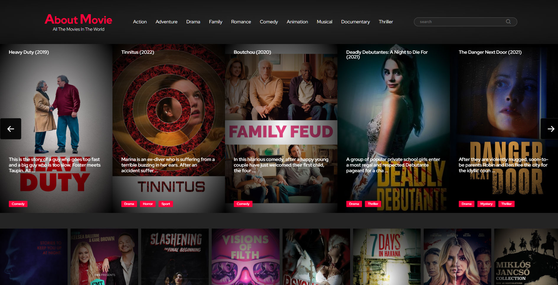 axios를 사용하여 영화 데이터 api를 가져와서 영화사이트를 제작했습니다. React의 react-router-dom을 사용하여 영화를 클릭하면 디테일 페이지로 이동합니다.